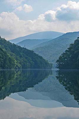Calderwood Lake is one of the lakes that makes up the lower portion of the Little Tennessee River. Water is released from Fontana Dam, then the Cheoah Dam, the Calderwood Dam and the Chilhowee Dam. After the Chilhowee Dam the Little Tennessee flows free into the Tennessee River. Water releases are timed to mimic the river flow. Graham County, North Carolina